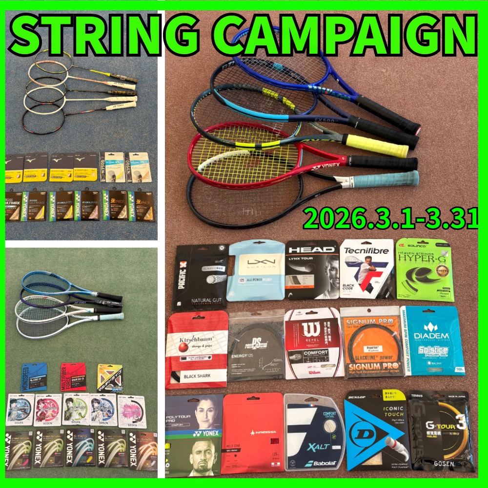 春のストリング&リプレイスメントグリップ(元グリップ)交換キャンペーン開催します!2026.02.21